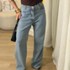 A Calça Wide Leg Jeans Vintage é a peça ideal para quem busca estilo e conforto em um só look. Com modelagem wide leg, possui caimento soltinho e elegante, valorizando a silhueta e alongando as pernas.