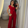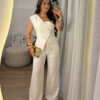 Conjunto Íris composto por blusa estruturada com recorte assimétrico e detalhe transpassado frontal, proporcionando um visual moderno e elegante. Acompanha calça pantalona com caimento impecável, trazendo movimento e sofisticação ao look. Tecido leve e confortável, ideal para ocasiões especiais ou produções mais refinadas. Veste com excelente ajuste e valoriza a silhueta.