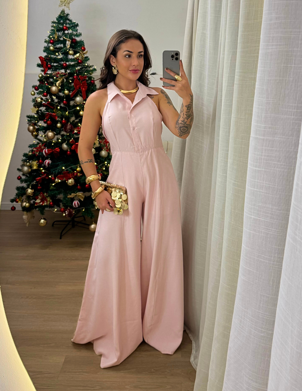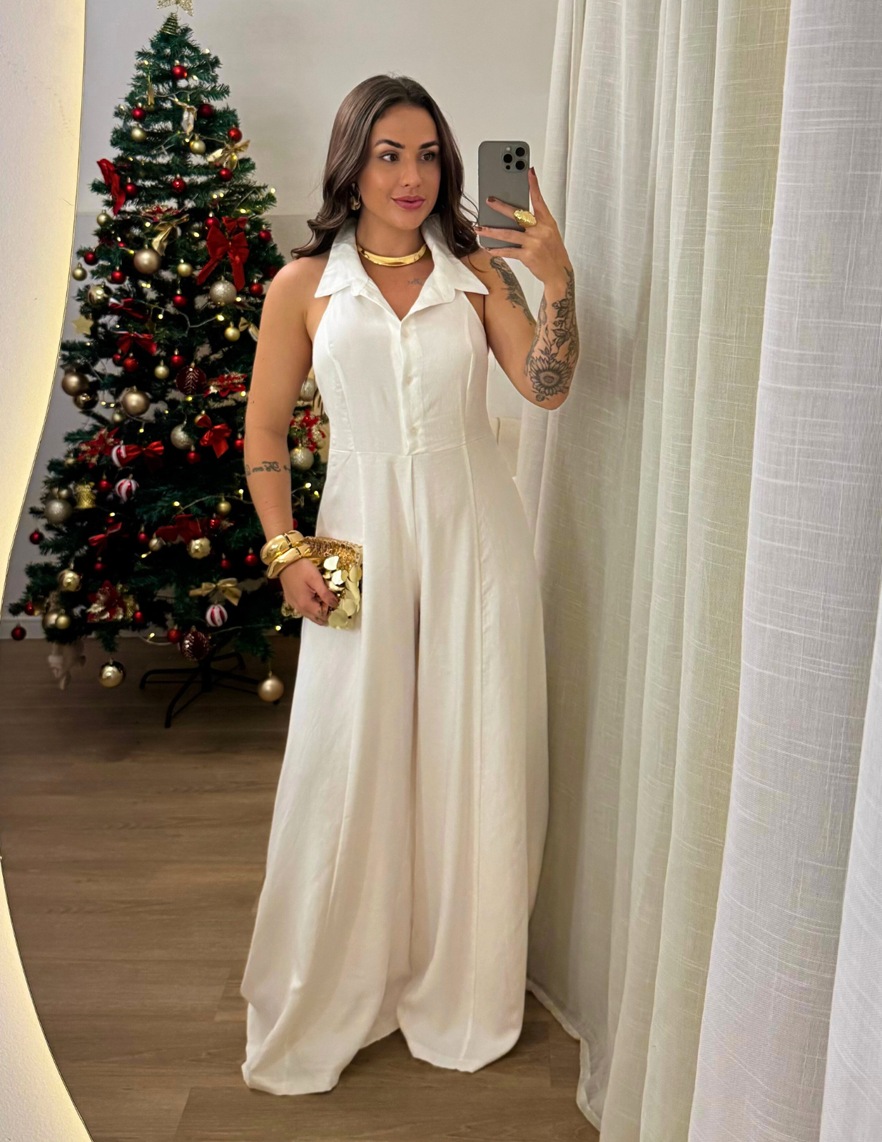 Macacão feminino estilo alfaiataria com caimento leve, toque sofisticado e acabamento impecável. A peça conta com fechamento por botões na parte frontal e zíper discreto na parte de trás da calça, proporcionando praticidade sem abrir mão do estilo. O design com colarinho e modelagem ampla traz elegância e conforto para compor looks do casual chic ao mais elaborado. Combine com acessórios marcantes para elevar ainda mais a produção.