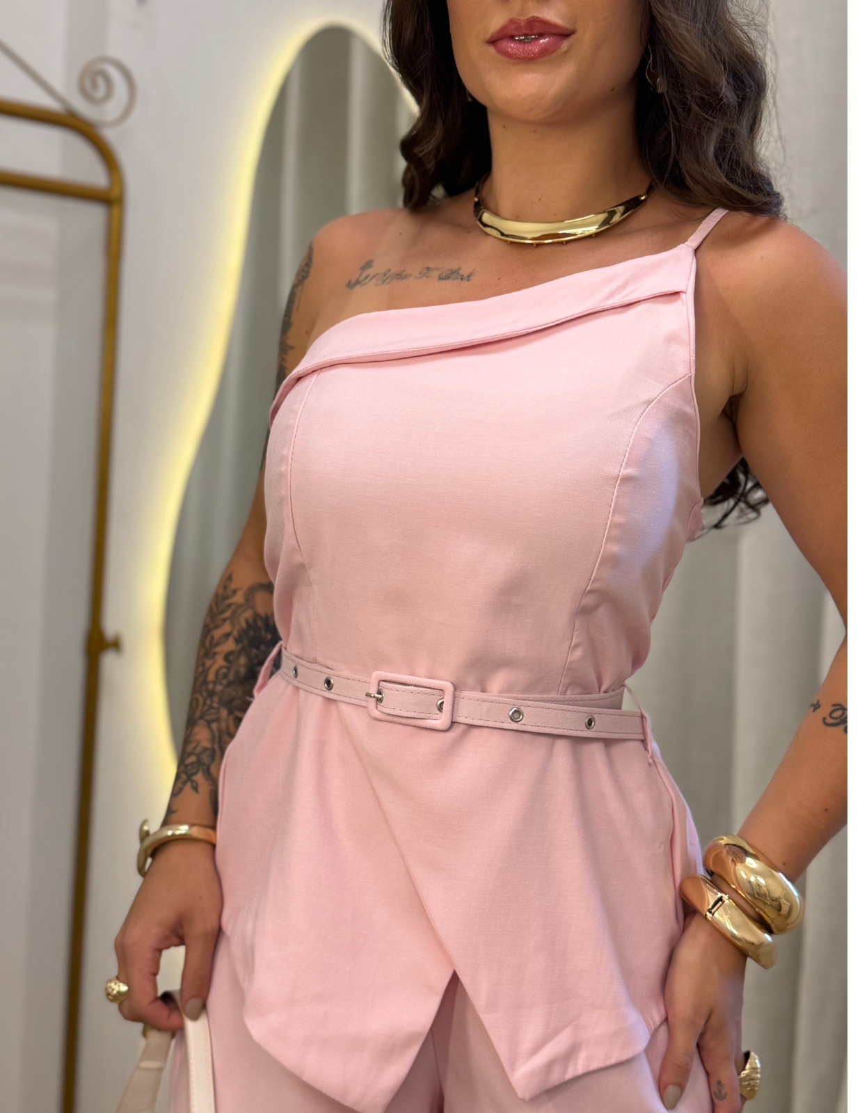 Macaquinho feminino com modelagem sofisticada e acabamento que valoriza a silhueta. Possui regulagem na alça, elastex na parte de trás para ajuste confortável e acompanha cinto do mesmo tecido para marcar a cintura. Confeccionado em tecido marrant, leve e com ótimo caimento — perfeito para looks do dia a dia ou ocasiões mais arrumadas.