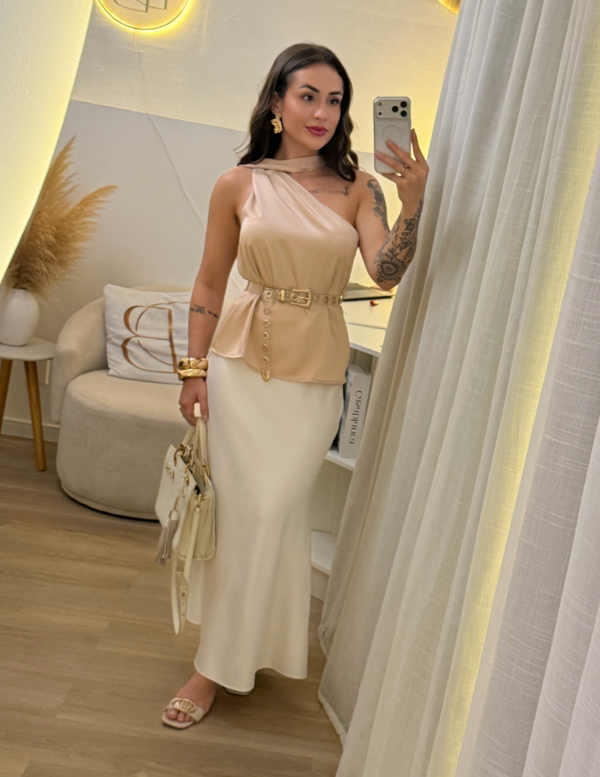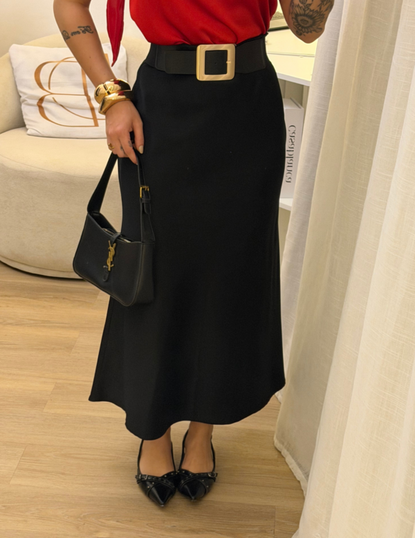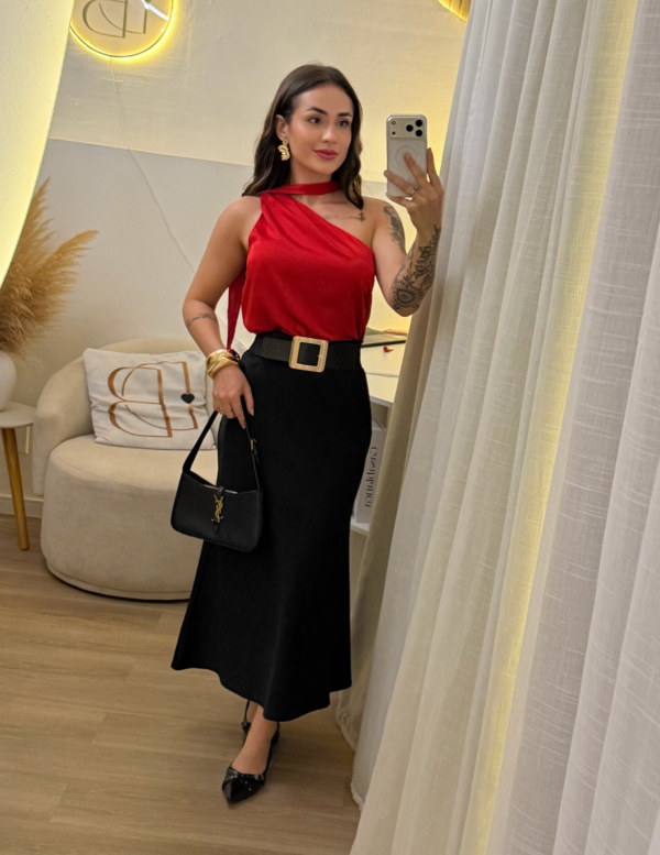 A Saia Midi em Cetim é uma peça clássica e sofisticada, perfeita para composições elegantes e atemporais. Confeccionada em tecido cetim, possui leve brilho e caimento fluido, valorizando a silhueta com muito charme.