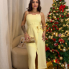 Vestido midi de modelagem elegante com alças finas e caimento fluido. Possui elastex na parte das costas, garantindo ajuste confortável e melhor sustentação no corpo. Peça versátil, ideal para ocasiões casuais e eventos mais refinados. Veste do 36 ao 40.