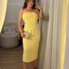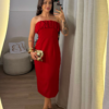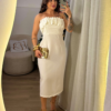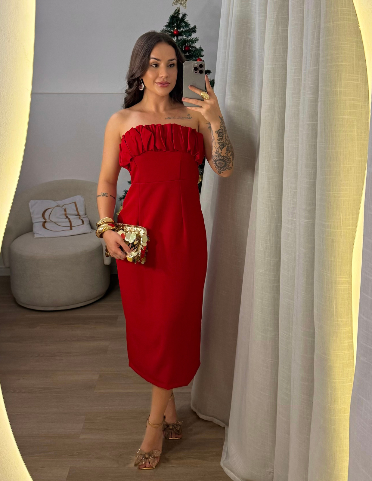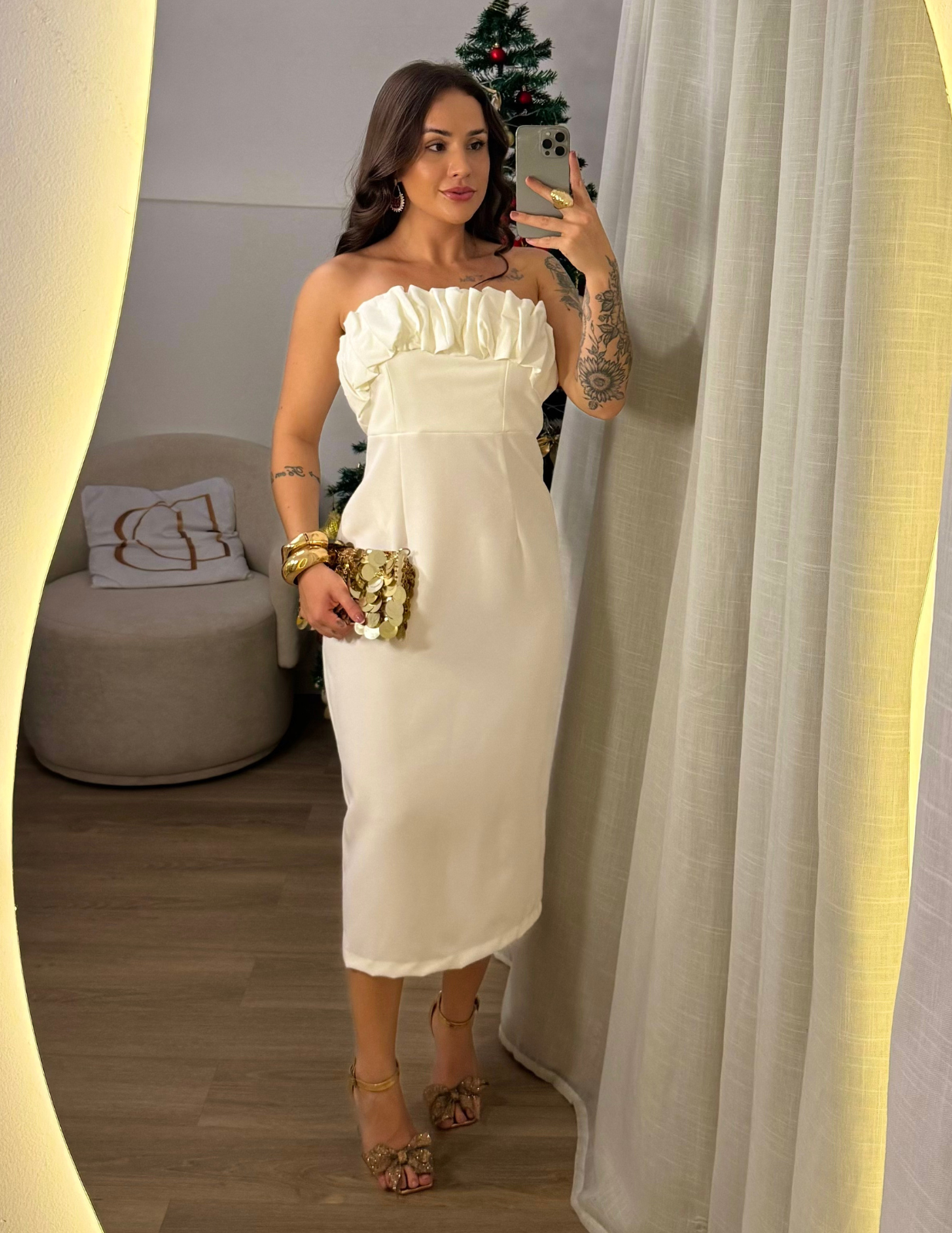 Vestido midi de modelagem ajustada com caimento elegante, ideal para ocasiões especiais. Acabamento refinado e fechamento em zíper na parte de trás, que facilita o ajuste. Tamanho único — veste do 38 ao 42.