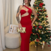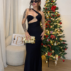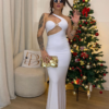Vestido longo em poliamida, com modelagem ajustada que valoriza a silhueta. Apresenta decote assimétrico com recorte frontal e detalhe aplicado no busto, além de saia longa com caimento fluido que alonga. Tecido com boa elasticidade e toque macio, ideal para ocasiões especiais ou eventos noturnos.